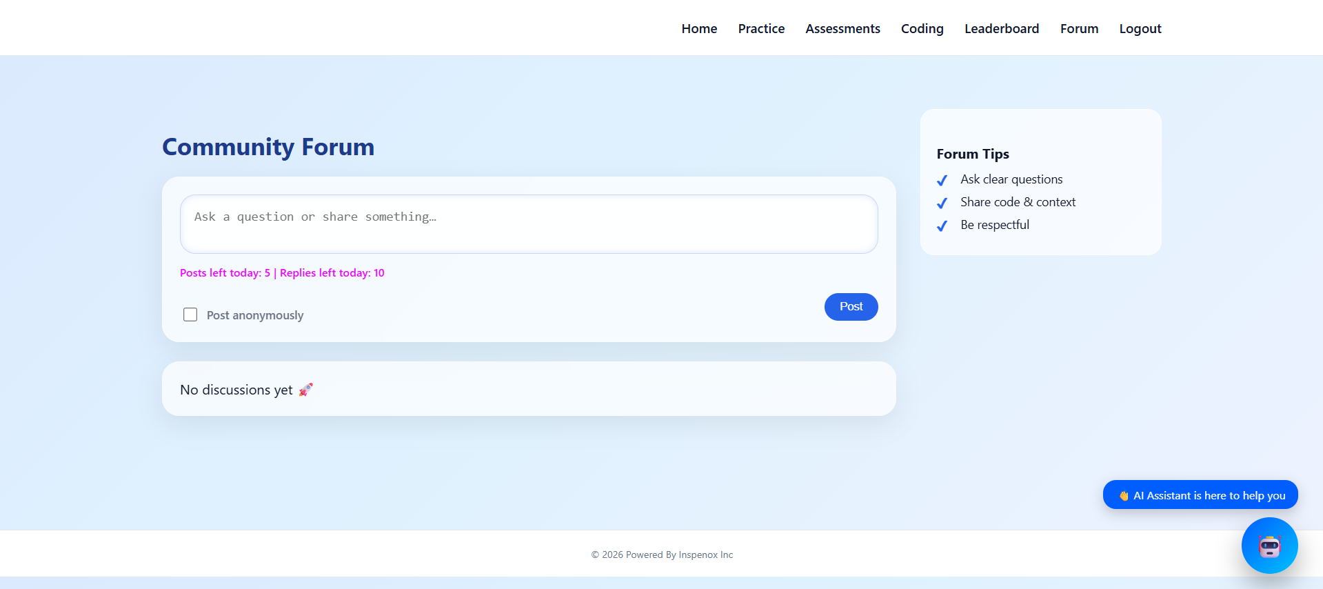 Integrated AI assistant helps students understand concepts, debug code and navigate the platform.